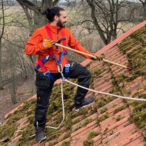 Att skrapa bort mossa själv är både farligt och ineffektivt. Arbete på tak innebär fallrisk, och fel metoder kan skada takpannorna eller göra garantin ogiltig.